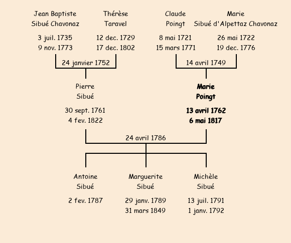 Epouse : Marie Poingt (habitait Bramans depuis 4 ans), fille de feu Claude et de Marie Sibué |