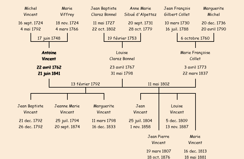 Epoux : Antoine Vincent (veuf de Louise Bonnel), fils de feu Michel et de feue Marie Viffrey |