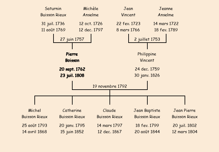 Epoux : Pierre Buisson Rieux, fils de feu Saturnin et de Michèle Anselme |