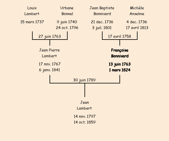 Epoux : Jean Pierre Lambert (habitait Villarembert), fils de Louis et de Albane Bonnel |