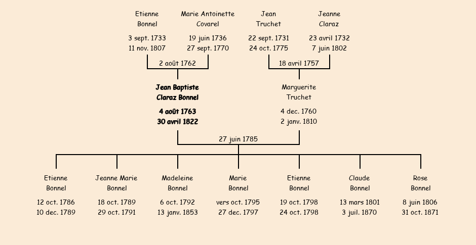 Père : Etienne Claraz Bonnel | Parrain : Jean Baptiste Bonnel |