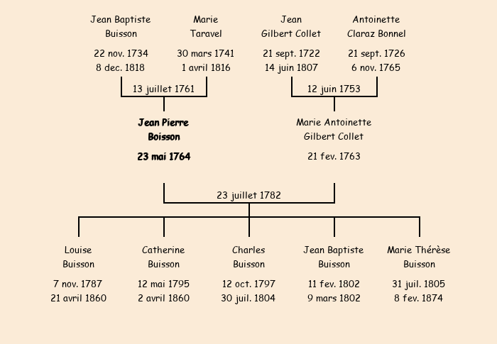 Epoux : Jean Pierre Buisson, fils de Jean Baptiste et de Marie Taravel |