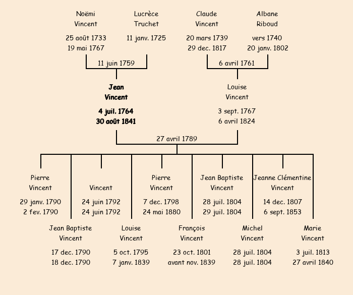 Epoux : Jean Vincent, fils de feu Noémi et de Lucrèce Truchet |
