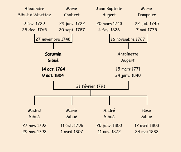 Epoux : Saturnin Sibué, fils de feu Alexandre et de Marie Chabert |