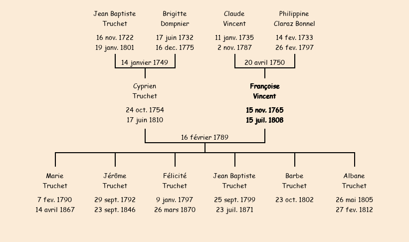 Epoux : Jean Truchet, fils de Jean Baptiste et de feue Brigitte Dompnier |