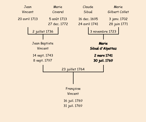 Père : Claude Sibué d'Alpettaz | Parrain : Georges Sibué d'Alpettaz (fils de Louis) |