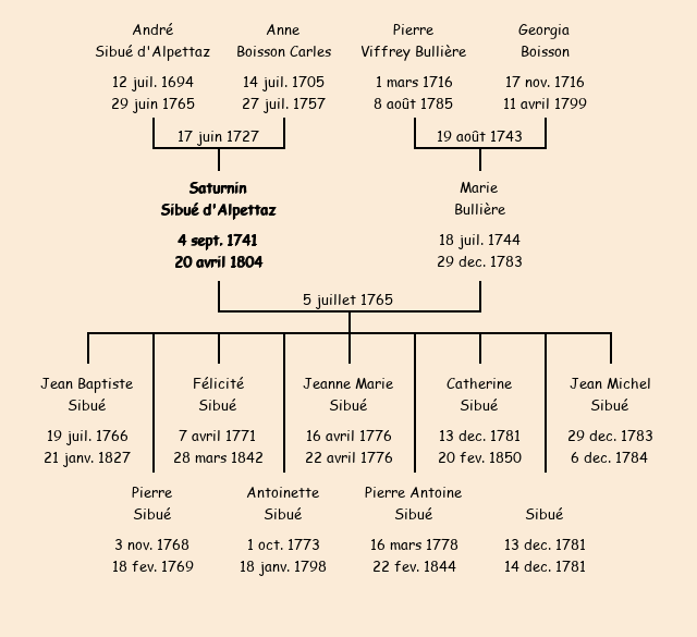 Saturnin Sibué d'Alpettaz apparait dans la consigne du sel pour l'année 1790. |
