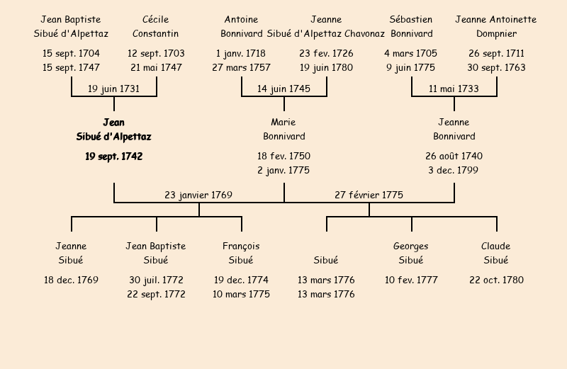Epoux : Jean Sibué (veuf de Marie Bonnivard), fils de feu Jean Baptiste |