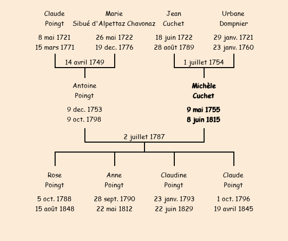 Mariée (32 ans) avec Antoine Poingt (33 ans) le 2 juillet 1787 à Fontcouverte ![]() |