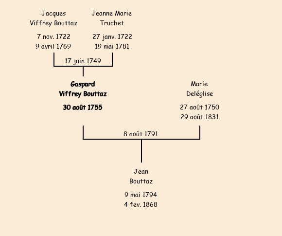 Epoux : Gaspard Bouttaz, fils de feu Jacques et de feue Jeanne Marie Truchet |