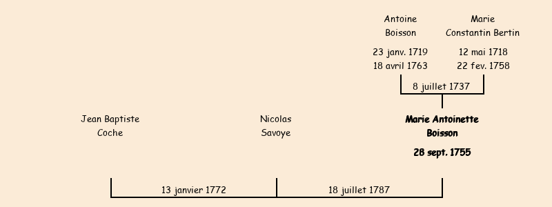 Mariée (16 ans) avec Jean Baptiste Coche le 13 janvier 1772 à Saint-Jean-de-Maurienne |