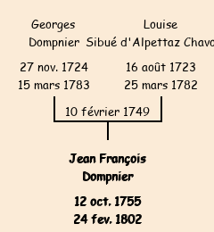 Père : Georges Dompnier | Parrain : Jean François Sibué Chavonnaz (fils de Joseph) |