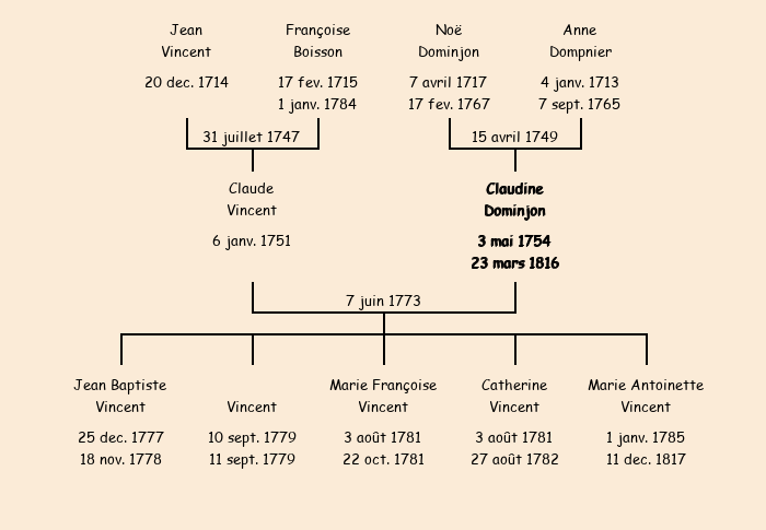 Epoux : Claude Vincent, fils de Jean et de Françoise Boisson |