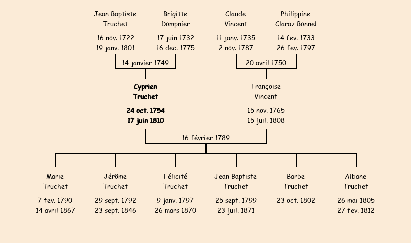 Epoux : Jean Truchet, fils de Jean Baptiste et de feue Brigitte Dompnier |