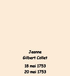 Autres informations : Baptisée à la maison par Jean Gilbert Collet, cérémonies complémenaires par le révérend Michel Michel vicaire |