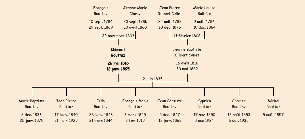 Epoux : Clément Bouttaz, fils de François et de Jeanne Marie Claraz |