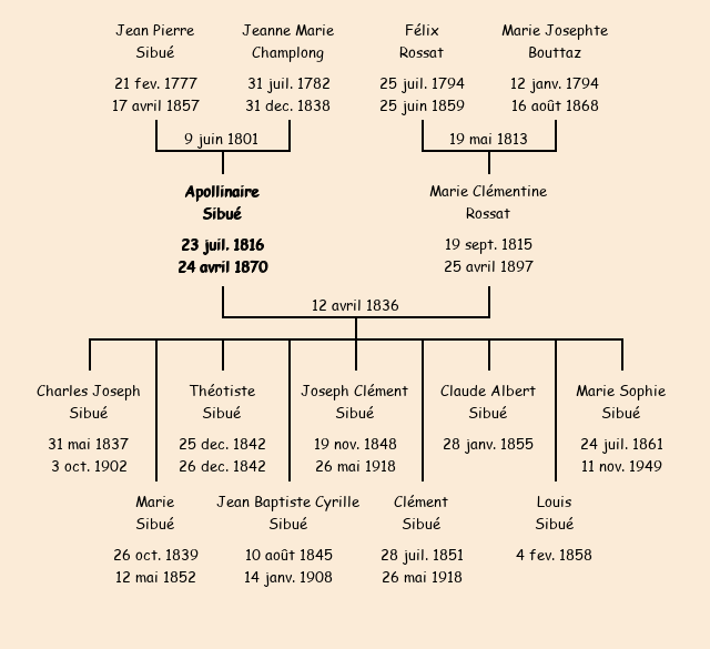 Père : Jean Pierre Sibué, fils de Jean Baptiste (de l'Alpettaz) | Parrain : Alexis Sibué |