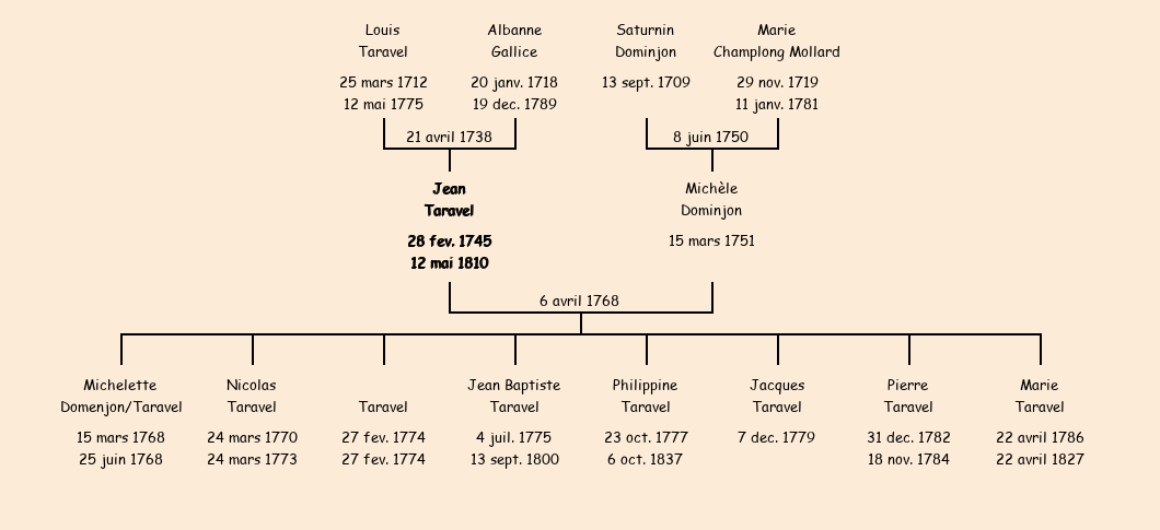 Père : Louis Taravel | Parrain : Jean Sibué (fils de Philippe) |