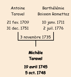 Père : Antoine Taravel | Parrain : Ambroise Taravel (fils de Pierre) |