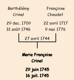 Père : Barthélémy Crinel | Parrain : Antoine Crinel (fils d'Antoine décédé, frère de la marraine) |