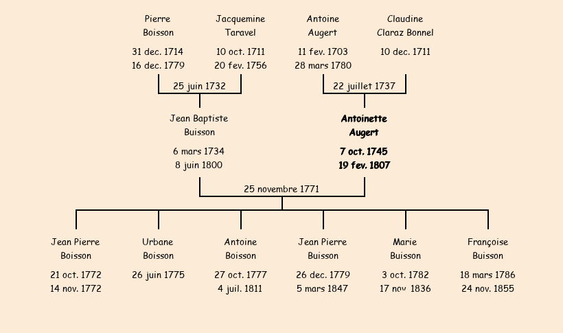 Epoux : Jean Baptiste Boisson (veuf de Françoise Boisson), fils de Pierre |