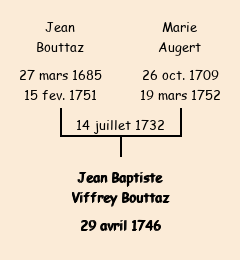 Père : Jean Viffrey Bouttaz | Parrain : Jean Baptiste Augert (fils d'Antoine décédé) |
