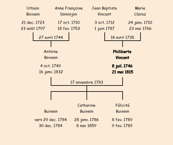 Epouse : Philiberte Vincent, fille de feu Jean Baptiste et de feue Marie Claraz |