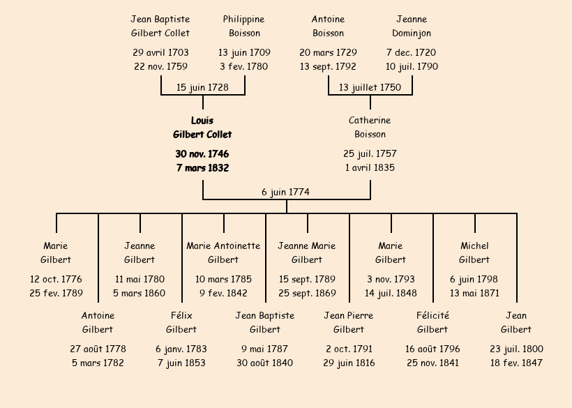 Père : Jean Baptiste Gilbert Collet | Parrain : Louis Boisson (fils de Jean) |