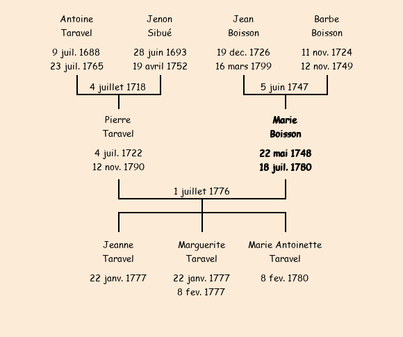 Mère : Barbe Boisson | Marraine : Marie Boisson (fille de Pierre, soeur du parrain) |