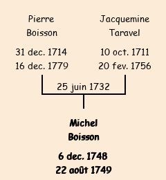 Père : Pierre Boisson | Parrain : Michel Boisson (fils de Jean Baptiste décédé, frère de la marraine) |