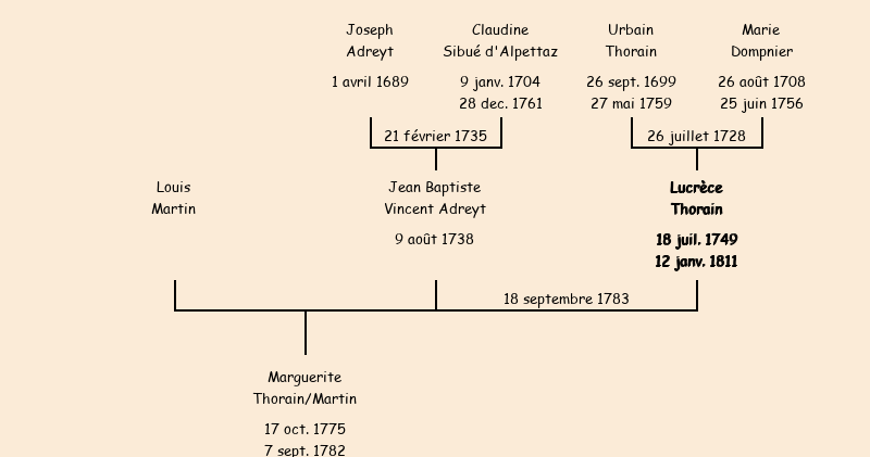 Mariée (34 ans) avec Jean Baptiste Vincent Adreyt (45 ans) le 18 septembre 1783 à Saint-Jean-de-Maurienne |