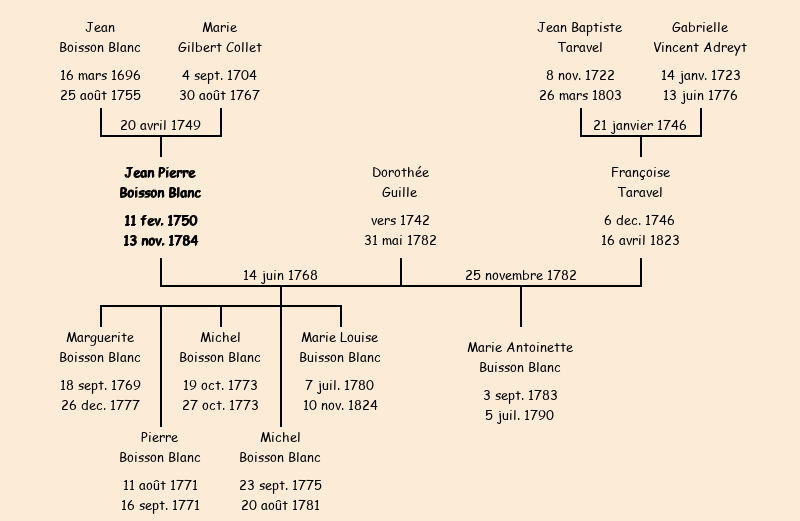 Epoux : Jean Pierre Buisson Blanc (veuf de Dorothée Guille), fils de feu Jean et de Marie Collet |