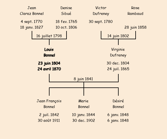 Père : Jean Bonnel, fils de Jean Baptiste | Parrain : Louis Bonnel |