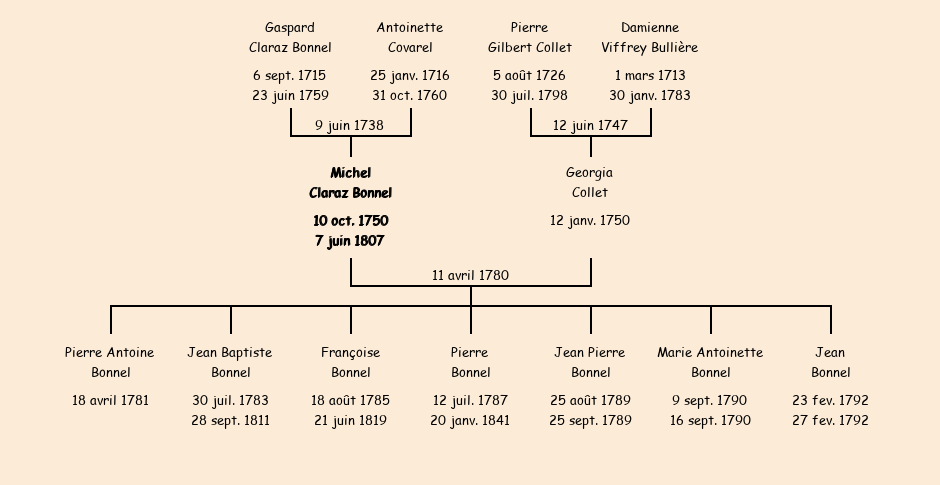 Père : Gaspard Claraz Bonnel | Parrain : Michel Bonnel |