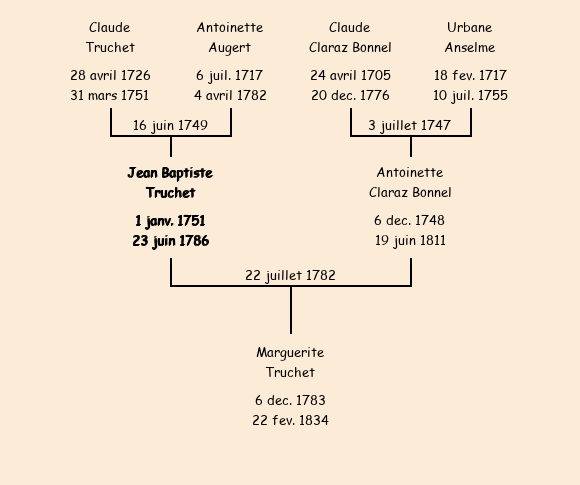 Père : Claude Truchet | Parrain : Jean Baptiste Truchet (fils de Pierre, frère de la marraine) |