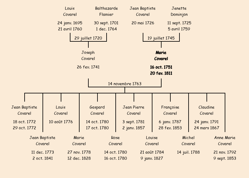 Mariée (12 ans) avec Joseph Covarel (22 ans) le 14 novembre 1763 à Fontcouverte ![]() |