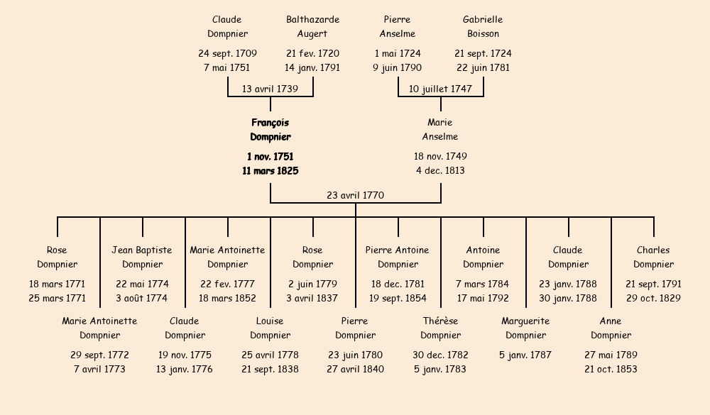 Père : Claude Dompnier (décédé) | Parrain : François Anselme (fils de Michel) |