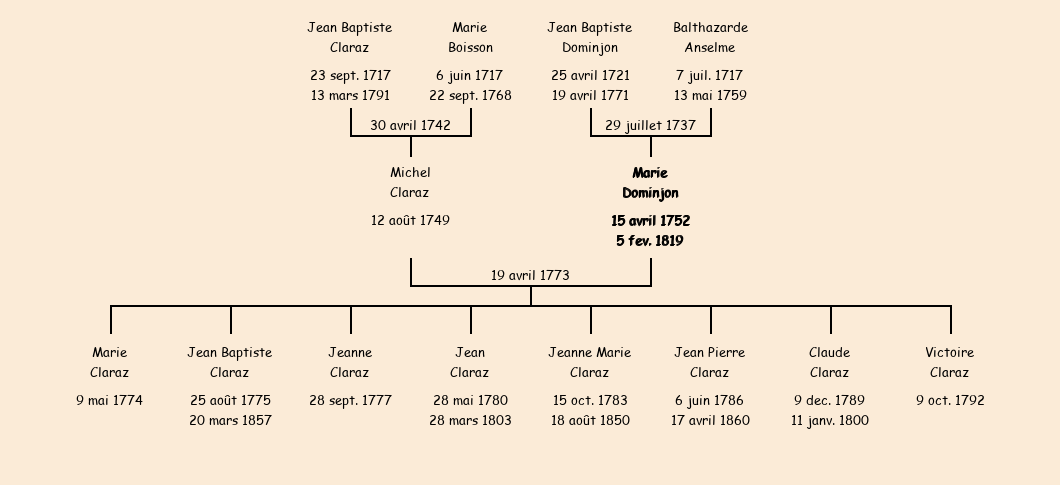 Epoux : Michel Claraz, fils de Jean Baptiste et de feue Marie Boisson |