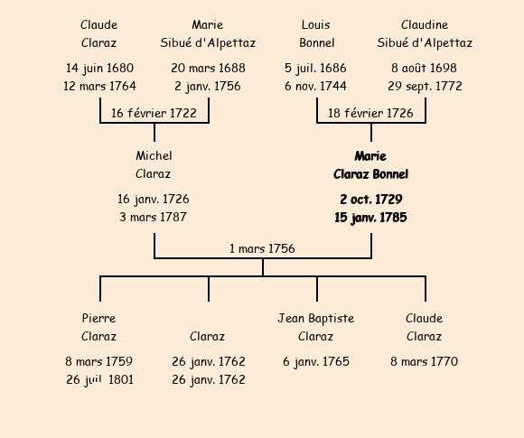 Marie Claraz Bonnel apparait dans la consigne du sel pour l'année 1759. |