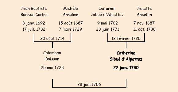 Saturnin Sibué d'Alpettaz (°1702 +1771) - 27 ans |