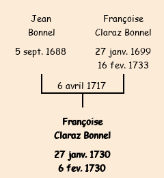 Françoise Claraz Bonnel (°1699 +1733) - 31 ans |