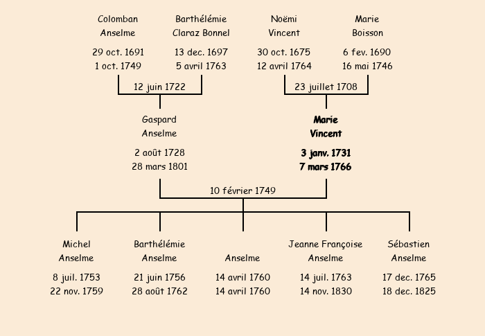 Mariée (18 ans) avec Gaspard Anselme (20 ans) le 10 février 1749 à Fontcouverte ![]() |