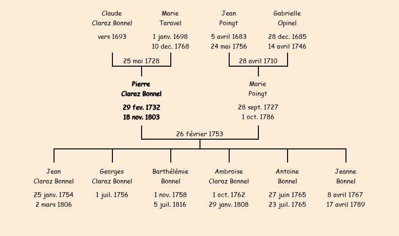 Mère : Marie Taravel | Marraine : Anne Claraz Bonnel (fille de Louis décédé) |