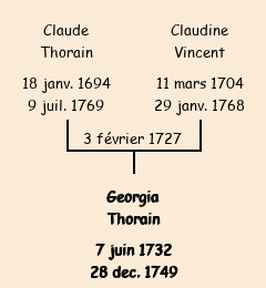 Georgia Thorain apparait dans le recensement des personnes de Fontcouverte et de leurs bestiaux de 1734. |