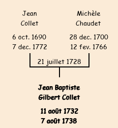 Père : Jean Gilbert Collet | Parrain : Sébastien Gilbert Collet (honnête, a signé) |