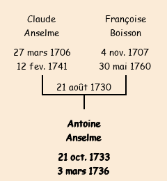 Père : Claude Anselme | Parrain : Antoine Dompnier (notaire) |