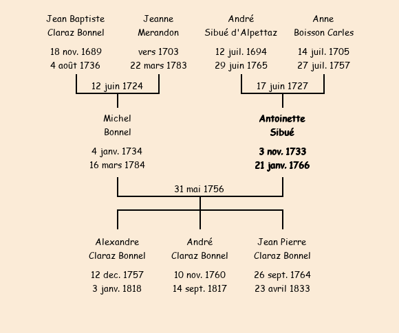 Père : André Sibué, fils de Jean Baptiste | Parrain : Claude Rossat (fils de Claude) |