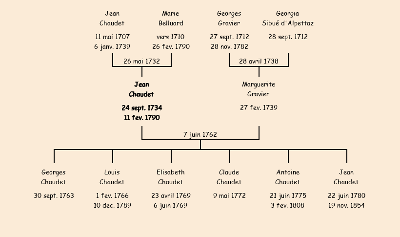 Père : Jean Chaudet (décédé) | Parrain : Jean Sibué d'Alpettaz |