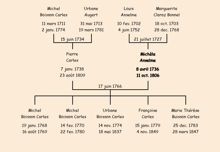 Mariée (30 ans) avec Pierre Carles (28 ans) le 17 juin 1766 à Fontcouverte ![]() |