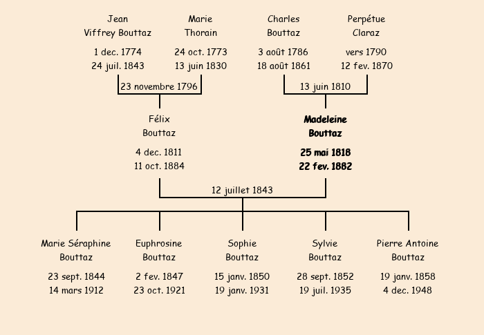 Mariée (25 ans) avec Félix Bouttaz (31 ans) le 12 juillet 1843 à Fontcouverte ![]() |